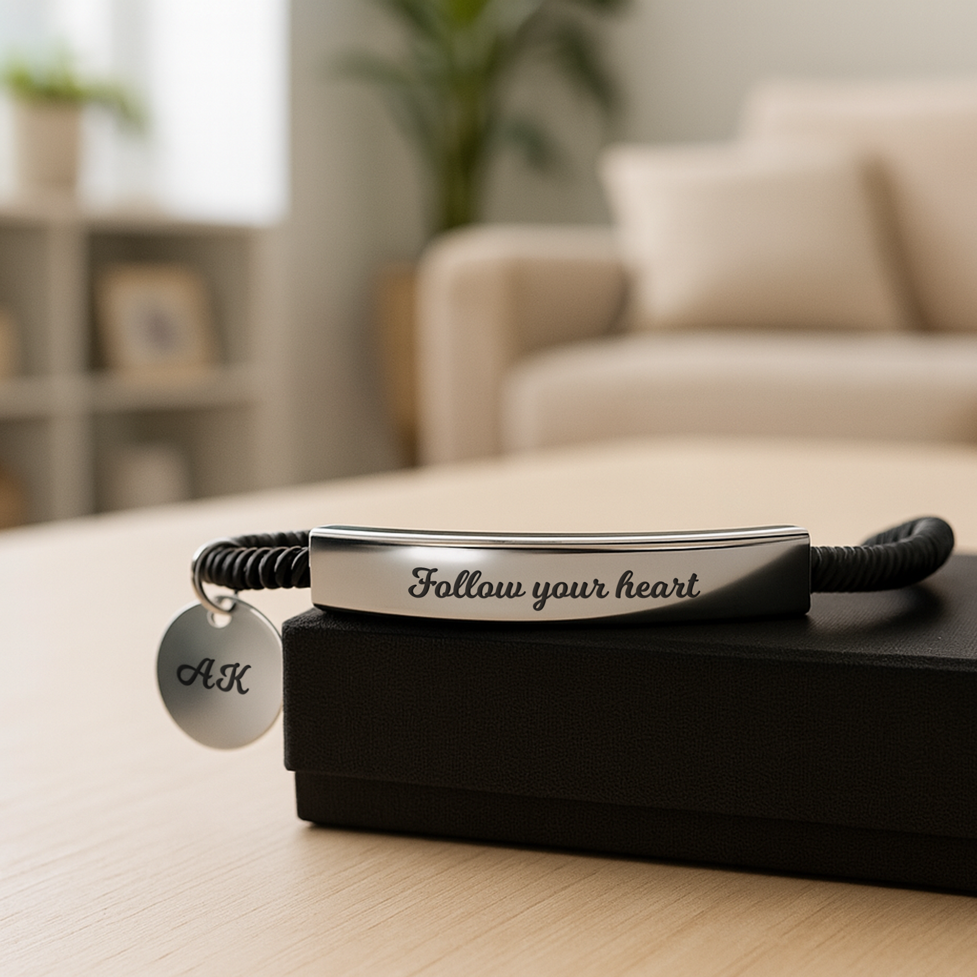 Use our easy customisation to add a personal message, whether it’s a name, special date, engraved initials, or a heartfelt sentiment, making it a truly bespoke piece of jewellery. This thoughtful custom present is ideal for birthdays, anniversaries, Mother's Day gifts, Father's Day presents, or simply a 'just because' gift for a loved one. The elegant band and durable polished plate ensure stylish, comfortable, everyday wear with a secure closure.